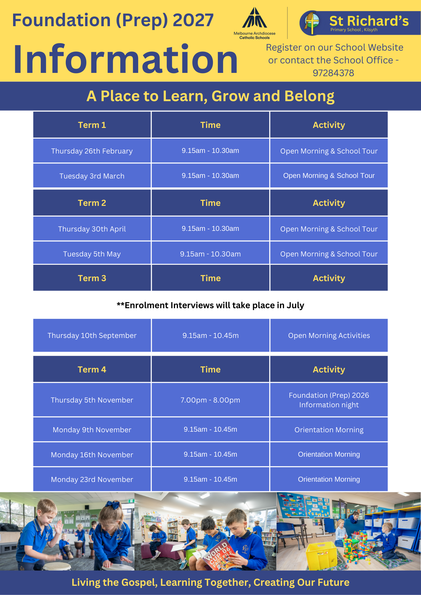 Prep (Foundation) Dates for 2027 Enrolments